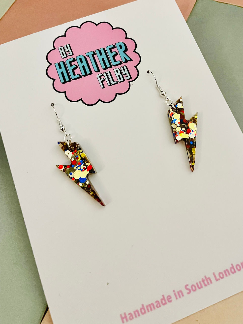 Small Gold & Silver Glitter Lightning Bolt Earrings